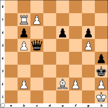 1. c8-H Hc8 2. Wd7 (3. Wd3+) Hd7 3. f3 (4. Gf1+)Nie ma gróźb patowych ze strony czarnych ponieważ jest pion e6.