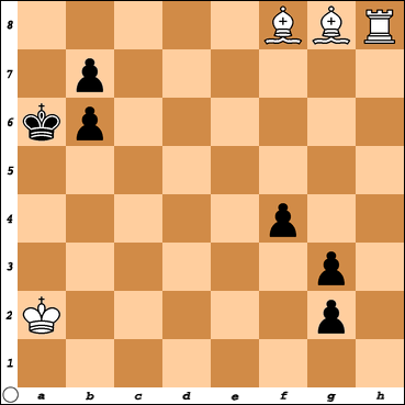 1.Gc4 Ka7 2. Gd6 g1-H 3.Gb8 Ka8 4. Gf4 Ka7 5.Gb8 Ka8 6.Gg3 Ka7 7.Gb8 Ka8 8.Gh2 Wa8