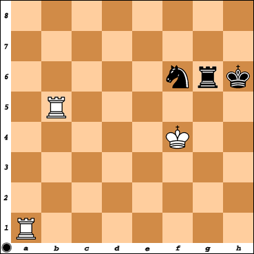 Pozycja pochodzi z partii Sergei Karjakin - Dmitry Kokarev i grana była dziś w ostatniej rundzie drużynowych mistrzostw Rosji. Przy precyzyjnej grze czarne powinny zremisować. Nastąpiło jednak nieprawdopodobne 65. ... Sh5+?? i po 66. W:h5 Kokarev natychmiast się poddał.